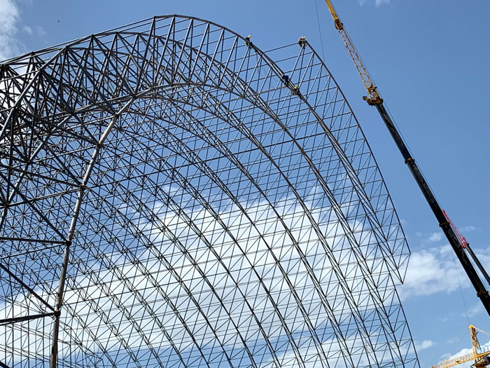 (2)网架加工前应对现场尺寸进行复测,确认无误后方可进行加工、安装;网架制作、运输、安装应遵守《空间网格结构技术规程》JGJ7-2010、《钢网架高安螺栓球节点》JG/T 10-2009、《钢网架高安螺栓球节点用高强度螺栓》 GB/T 16939-2016、《高安钢结构高安工程高安施工规范》 GB50755-2012、《高安钢结构高安工程施工质量验收标准》 GB50205-2020。